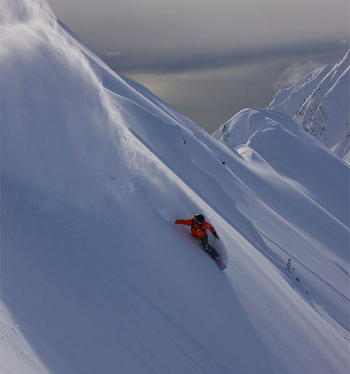 Heath Thomson, heli-skiing in Alaska backcountry, March 2014